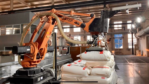 防排水板智能拆垛上料裝備。該設(shè)備有針對(duì)性地設(shè)計(jì)了防排水板自動(dòng)拆垛上料系統(tǒng)的軟硬件組成,尤其是機(jī)器視覺(jué)、電控和機(jī)器人方面,完成了系統(tǒng)的部署及應(yīng)用。在機(jī)器視覺(jué)識(shí)別精準(zhǔn)性方面,料袋中心的平均定位誤差不超過(guò)2.5cm。在運(yùn)行速度方面,袋料的平均拆垛上料時(shí)間在50秒以?xún)?nèi)。