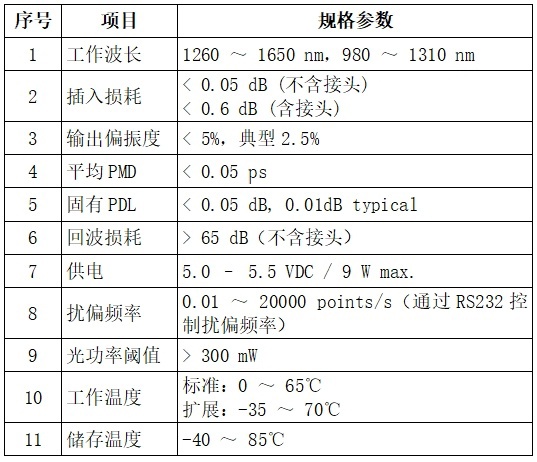 產品應用:傳感器和通信系統、消除偏振敏感性、PMD仿真、監控和補償、PDL測量