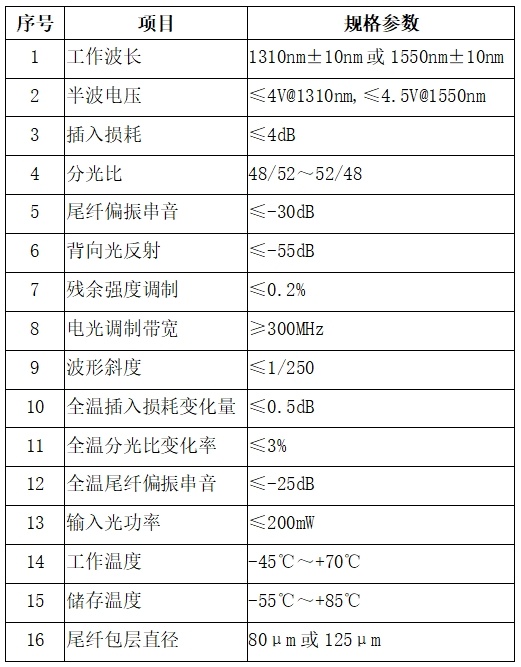Y波導相位調制器是一種采用質子交換工藝制備的LiNbO3多功能集成電光相位調制器,具有低插入損耗、高偏振消光比和高穩定性特點,可實現光束的起偏與檢偏、分束與合束、相位調制等功能。